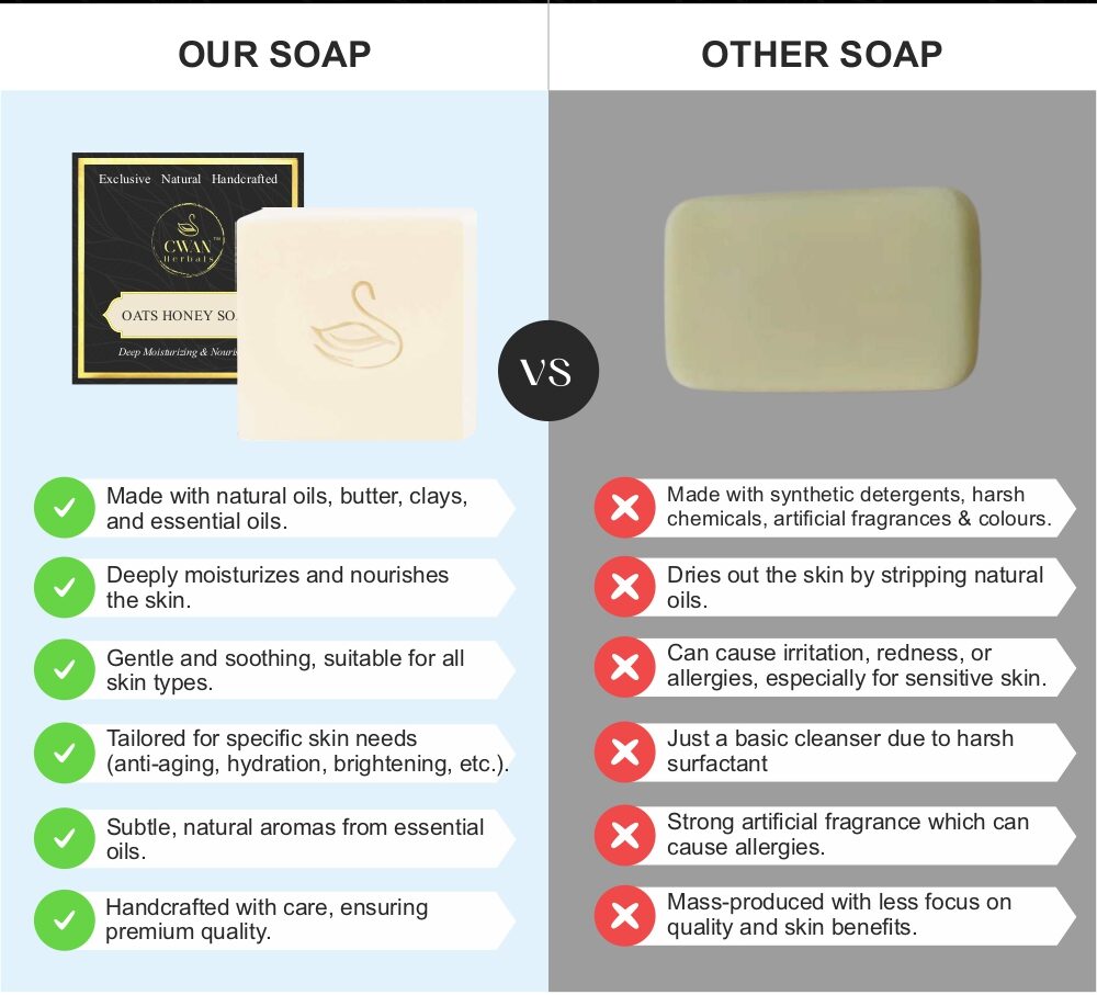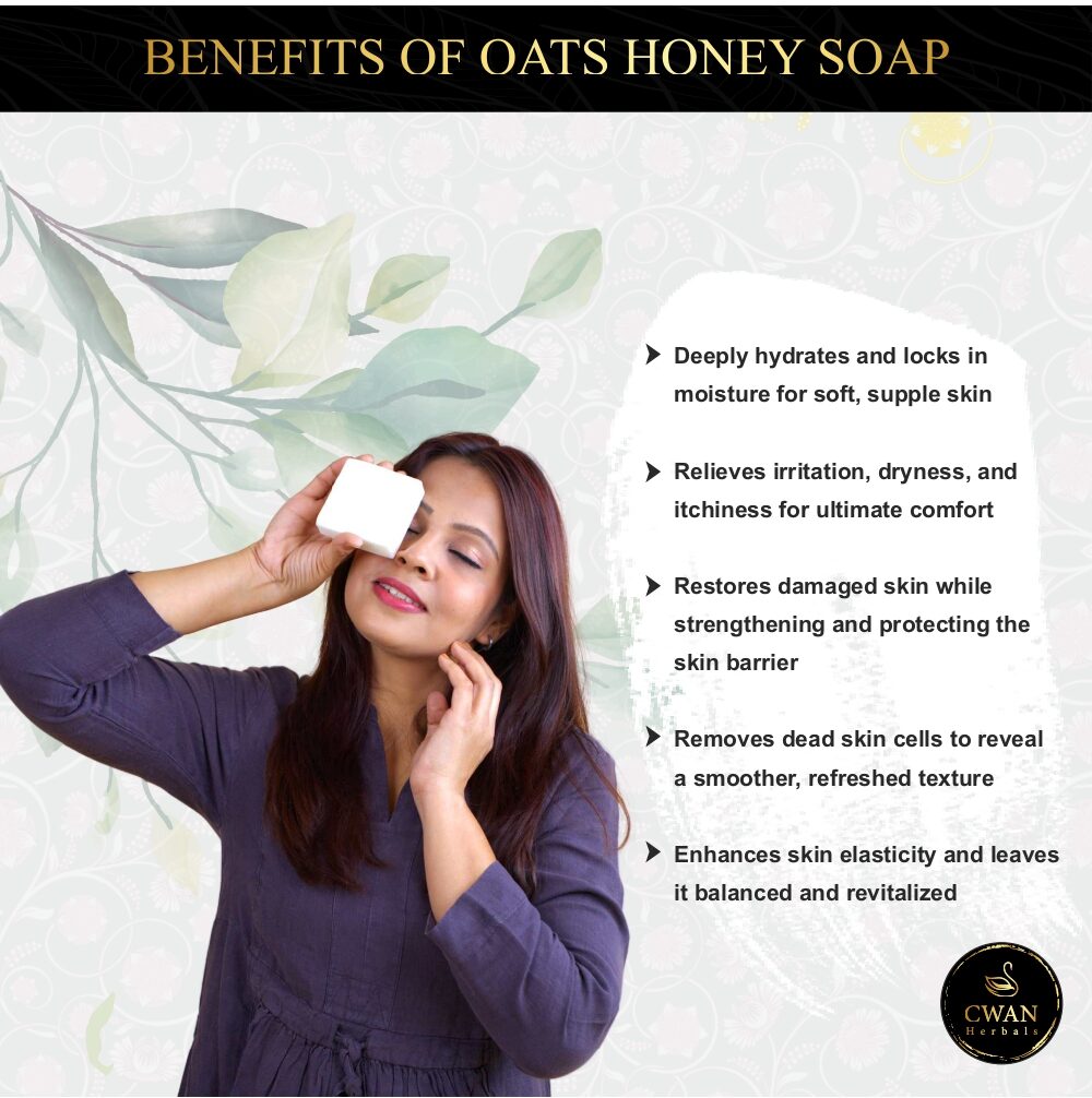 Elevate & pamper your skin with our Oats Honey Soap, designed to deliver intense moisture and nourishment. This luxurious blend combines soothing oats with hydrating honey and rich butter to leave your skin soft, supple, and beautifully balanced.